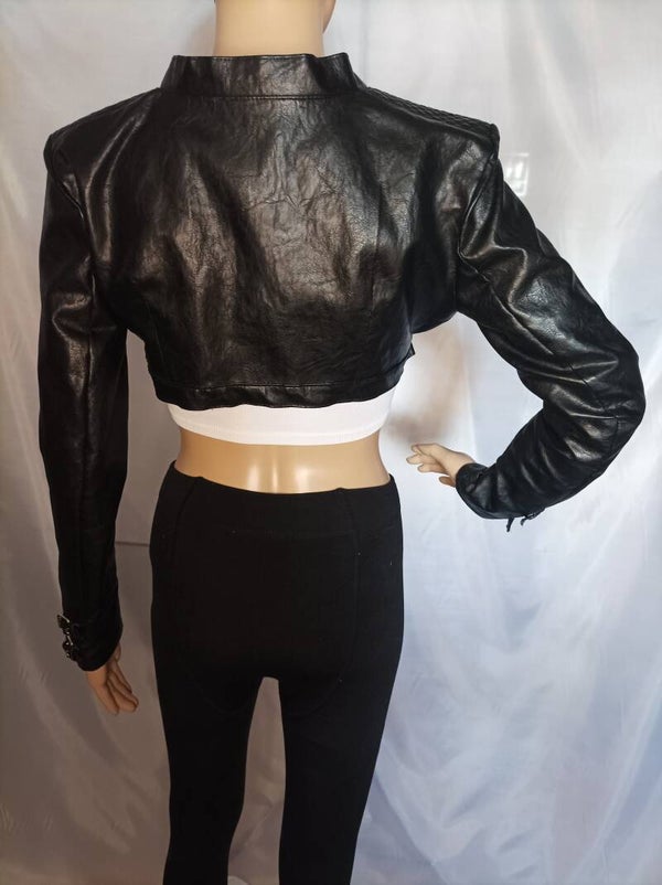 Cette veste crop top en similicuir allie style et modernité pour une allure tendance. Fabriquée avec un similicuir de haute qualité, elle offre un look chic et élégant.